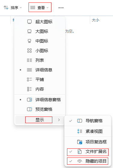 .前缀的文件夹是隐藏的,依次点击查看>显示>隐藏的项目